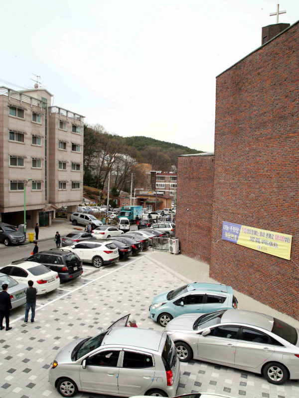 그 첫 번째가 이번에 개장한 용인성당 나눔 주차장이고, 두 번째 나눔주차장을 수지구 성복동 선민교회에 30여면 규모로 조성하는 중이다.