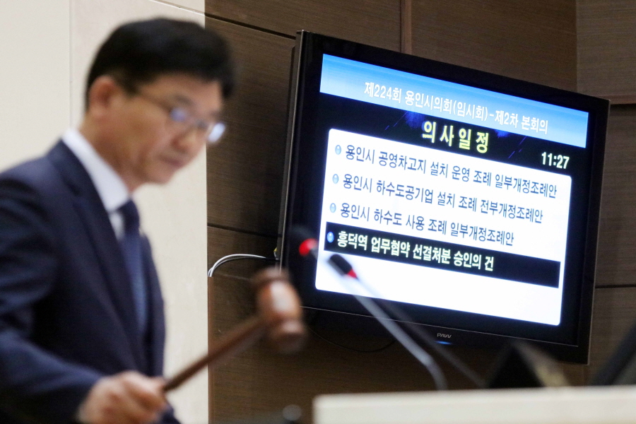 용인시는 30일 용인시의회가 제224회 임시회 제2차 본회의를 열어, ‘흥덕역 업무협약 선결처분 승인의 건’을 재적의원 27명 전원이 참석한 가운데 찬성 18, 반대 9로 가결했다고 밝혔다.
