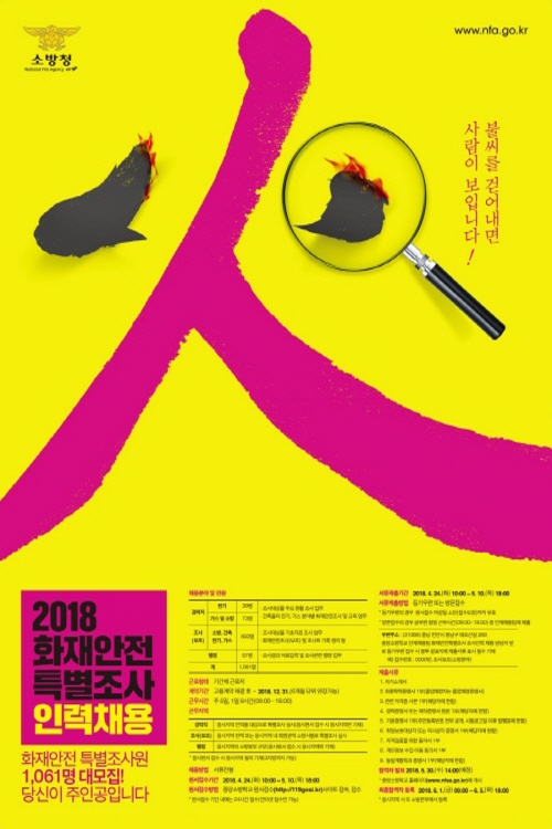 용인소방서 관계자는 “제천·밀양 화재와 같은 대형 참사의 재발 방지를 위해 관내 소방대상물의 점검과 위험요소 제거 등 안전에 최선을 다할 것이며, 특별조사 인력채용에 시민들의 많은 관심과 참여를 바란다,”고 말했다.