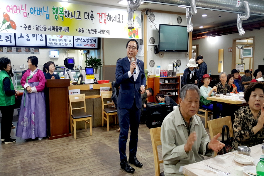경기도의회 정기열 의장(더불어민주당, 안양4)은 5월 9일(수) 11시, 안양 더 그레이스 켈리에서 열린 관양 1동 경로잔치를 시작으로 관양 2동, 달안동, 부림동 경로잔치에 잇달아 참석해 어르신들의 행복과 건강을 기원했다.