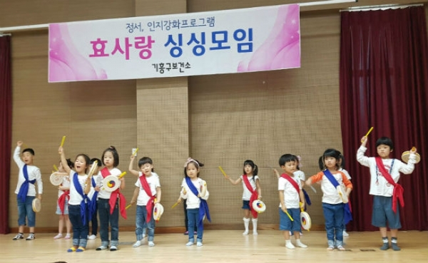 신갈초등학교 병설유치원(원장 정유현)은 5월 17일, 용인시 기흥구보건소에서 지역사회와 함께하는‘싱싱~~ 효사랑, 따뜻한 사랑 감사나누기 행사’에 참여하여 홀로 어르신들을 위한 효 사랑 꿈돌이 잔치를 진행하였다.