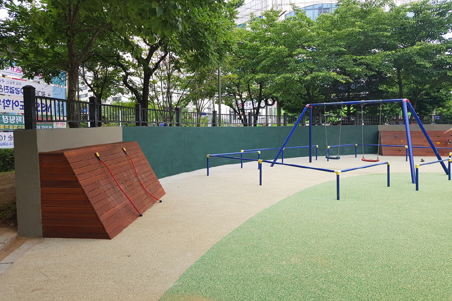 또 놀이시설 옆 가벽을 친환경페인트로 칠하고, 가벽에 클라이밍, 어린이낙서판, 밧줄타기 등 체력과 상상력을 자극할 수 있는 놀이시설도 추가했다.