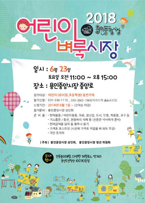 용인중앙시장 상인회는 오는 23일 오전11시부터 오후3시까지, 시장 내 중앙로에서 어린이 벼룩시장을 개최한다.