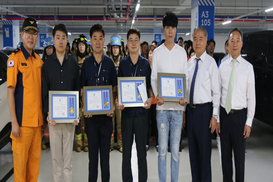 당시 화재를 진압한 시민 4인(김태민, 전대영, 위인채, 고봉재)은 남서울오토허브의 자위소방대원으로, 화재를 발견한 즉시 화재장소로 이동하여 소화기 및 옥내소화전을 사용하여, 화재를 진압하는 것과 동시에 화재 진압대가 도착할 때까지, 연소확대가 발생하는 것을 방지하였다. 덕분에 인명피해 없이 차 한 대 가량의 재산 피해만 남기고 초기 소화될 수 있었다.