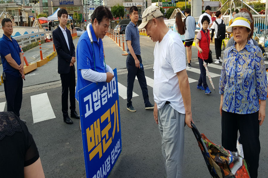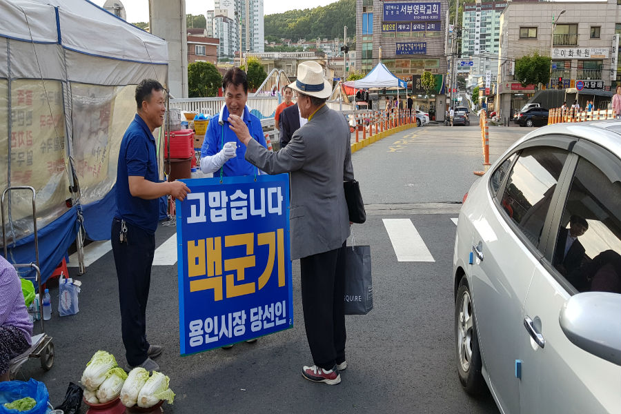 백군기 당선자는 시장을 보러나온 시민들에게, 고맙다며 당선인사를 했으며, 일부시민들은 백군기 당선자의 손을 꼬옥잡기도했다.