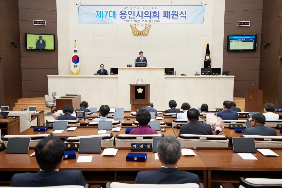 용인시의회(의장 김대정)는 29일 10시 30분 본회의장에서, 제7대 용인시의회 폐원식을 열었다.