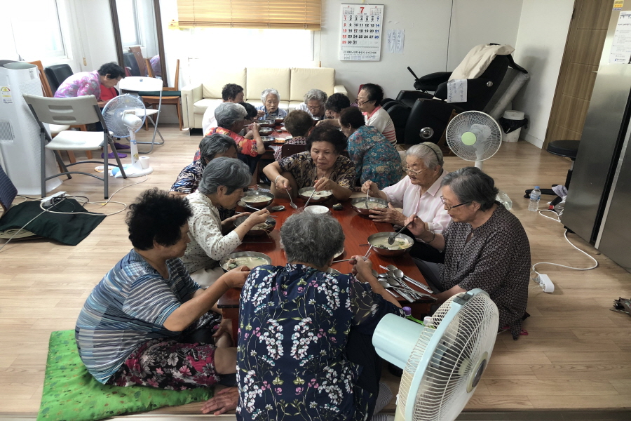이날 지역사회보장협의체와 부녀회 회원들은, 직접 끓인 전복삼계탕과 복숭아, 수박 등의 과일을 대접하고, 어르신들의 건강한 여름나기를 기원했다.