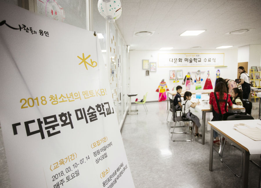 올해로 5년차를 맞이하는「청소년의 멘토 KB!」다문화미술학교는 KB국민은행이 후원하고 용인문화재단이 주최(주관)하는 지역의 대표적 사회공헌사업으로 지난 3월 개관한 용인국제어린이도서관에 2개 반을 신규 개설하는 등 총 6개 반 80여명의 지역 청소년들과 함께 15회의 수업과 전시회 참여 활동을 하였다.