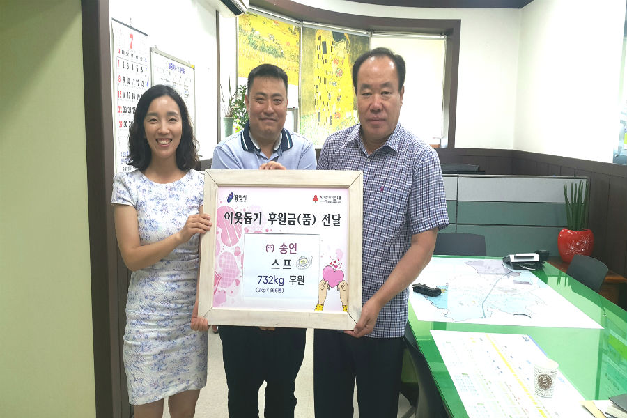 송기석 ㈜송연 대표는 “지역에서 사업장을 운영하면서, 지역을 위해 조금이나마 보탬이 되는 일을 하고 싶어서 건강스프를 기탁했다”고 밝혔다.