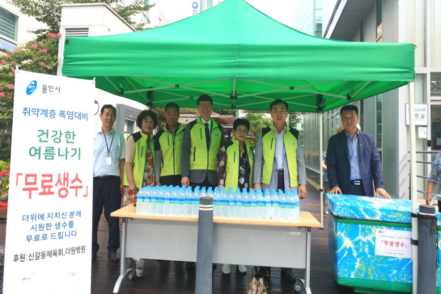 이번 행사는 홀로어르신, 장애인, 만성질환자 등, 폭염 취약계층 주민들이 건강한 여름을 나도록, 신갈동체육회와 더원병원이 500㎖ 생수 3000병을 후원하고, 용인시상하수도사업소가 300㎖ 백옥수 500병을 후원해 마련됐다.