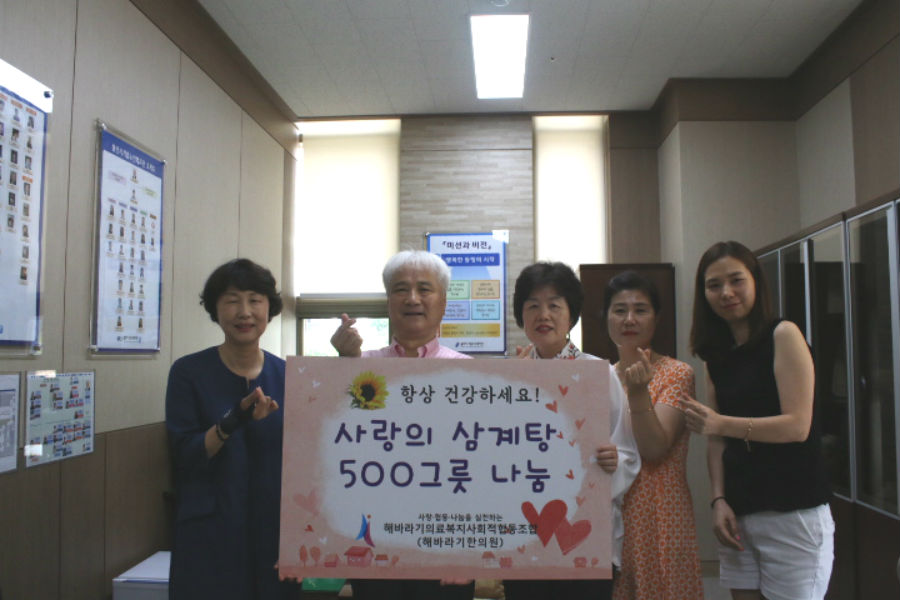 중복을 맞이하여 장각백숙 500인분을 해바라기 의료복지 사회적 협동조합에서 후원하였으며, 어르신들의 건강한 여름나기를 위한 떡 500인분을 (주)지산그룹 한주식 회장이 후원하였다. 또한 사)대한민국 방송코미디언 협회에서는 무더위를 시원하게 날려버릴 공연과, 음료 300개와 제과 3,000개를 후원하여, 어르신들께 다양한 행복을 선사할 수 있는 의미 있는 행사가 되었으며, 지역사회 나눔 문화 확산에 기여하는 기회가 되었다.