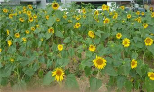 구성동 향교 앞 도로변 유휴지에 해바라기가 만개해, 지나가는 시민들에게 볼거리를 제공해 찌는듯한 무더위를 식히고 있다.
