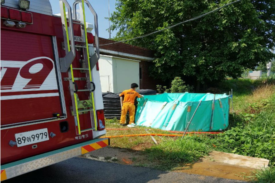 지난 3일엔 이들에 더해 백암119안전센터 소방차까지 지원받아, 물대기를 한 바 있다.