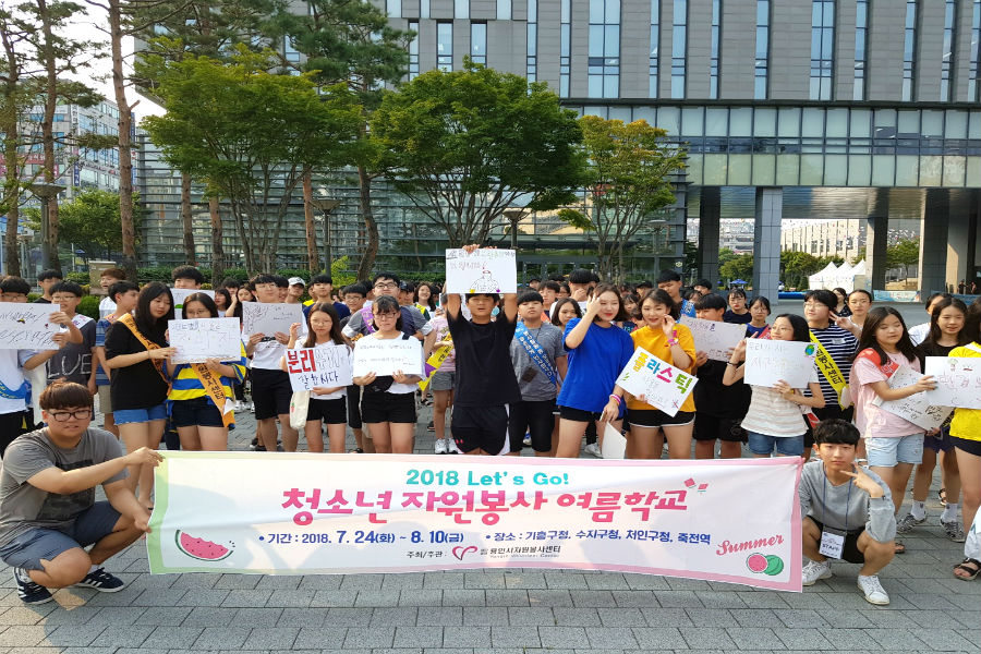 재단법인 용인시자원봉사센터는, 지난 7월24일부터 8월10일까지 시내 3개구청과 죽전역 광장 등에서 진행한, 청소년 자원봉사 여름학교에 연인원 5.000여명이 참가했다고 밝혔다.