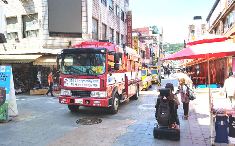 이번 훈련은 소방공무원 및 의용소방대원, 경찰, 처인구청 등 40여명의 인원이 참여한 가운데 ▲소방차 길터주기 훈련 ▲전통시장 현지적응 훈련 ▲전통시장 소방통로 확보를 위한 홍보 캠페인 ▲주택용 소방시설 홍보 ▲도로교통법 및 소방기본법 개정사항 등을 전통시장 이용객들과 상인들을 대상으로 홍보했다.