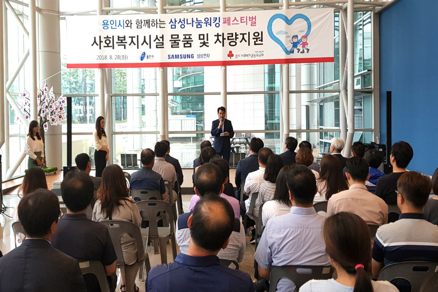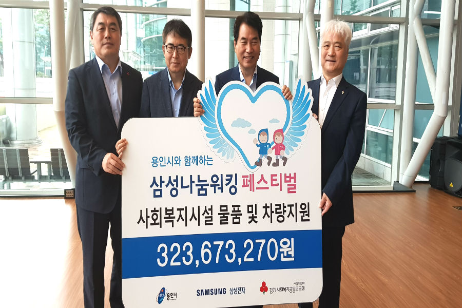 ‘삼성나눔 워킹 페스티벌’은 삼성전자가 사회공헌활동으로, 용인시와 함께 개최하는 시민 걷기대회로, 행사에 참여하는 용인 시민이 낸 참가비(5천원)만큼, 삼성전자가 동일한 금액의 매칭기금을 후원해 복지기금으로 사용한다.
