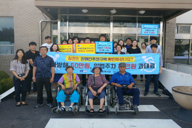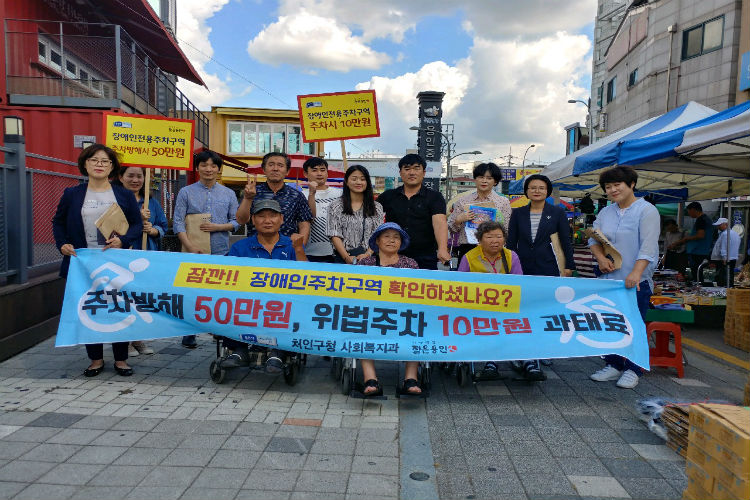 이날 처인구청 직원들은 장애인편의시설 기술지원센터, 지체장애인협회, 중앙동 주민센터 관계자들과 함께 거리를 행진하며 시민들에게 안내문을 나눠주고 장애인전용주차구역 준수를 당부했다.