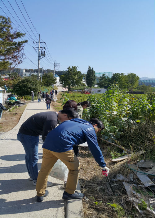 이날 직원들은 공사가 부서별로 하고 있는 지역사회공헌의 하나로 자원재생과 함께 자연환경 보호에도 앞장선다는 점을 알리기 위해 나섰다.
