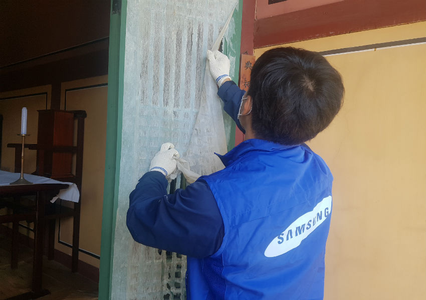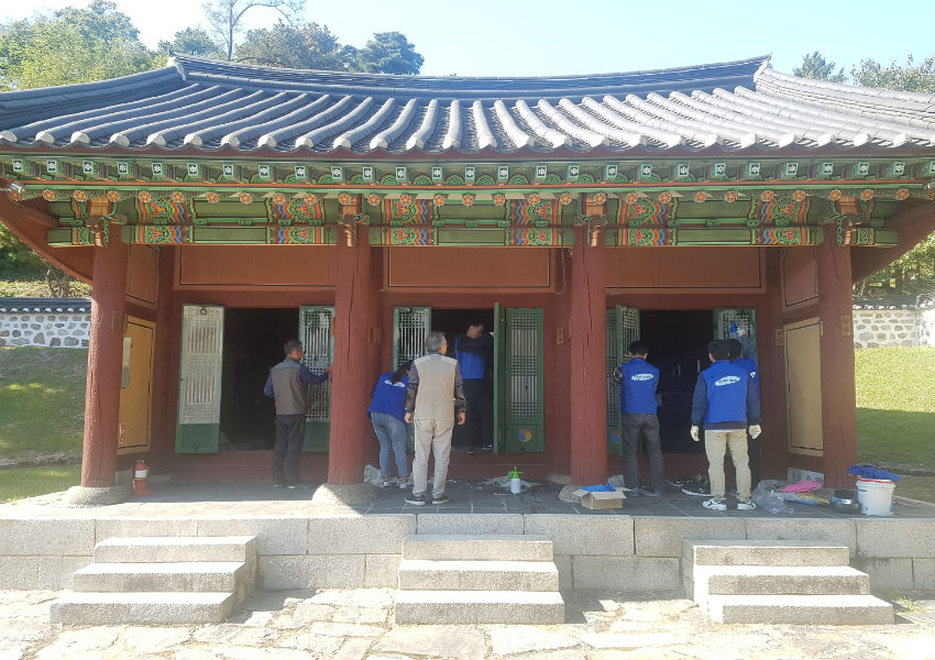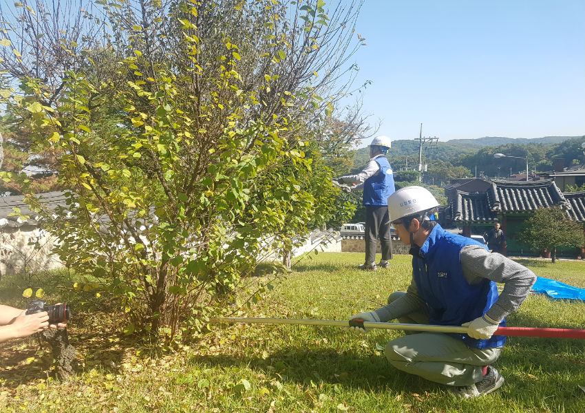 이날 봉사자들은 조경가위 등 장비로 충렬서원 안팎에 심겨진 수목의 모양을 다듬고 죽은 나뭇가지를 자르는 등 수목을 정리했다. 또 서원 내 사우(祠宇,제사를 지나는 공간)에선 출입문의 낡은 창호지를 교체하고 마루 청소와 거미줄 제거, 소화기 정비 등 깔끔하게 정돈했다.