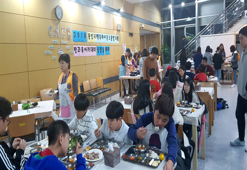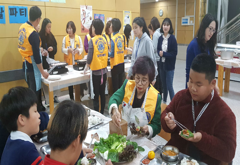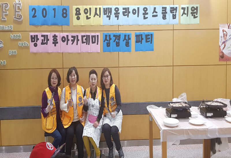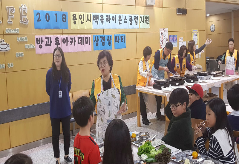 신갈 백옥라이온스클럽(회장 한성란)에서 방과 후 아카데미 학생들을 위해, 삼겹살 파티를 열고 있었다.