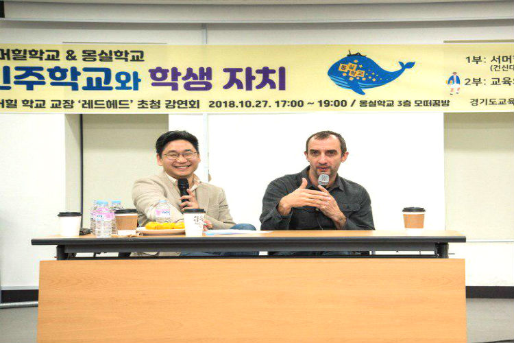 헨리 레드우드 교감은“자유는 방종이 아니라 책임을 동반한 자유이며, 민주주의의 핵심이다.”는 설립자 니일의 교육철학을 소개하며 강연을 진행했다.