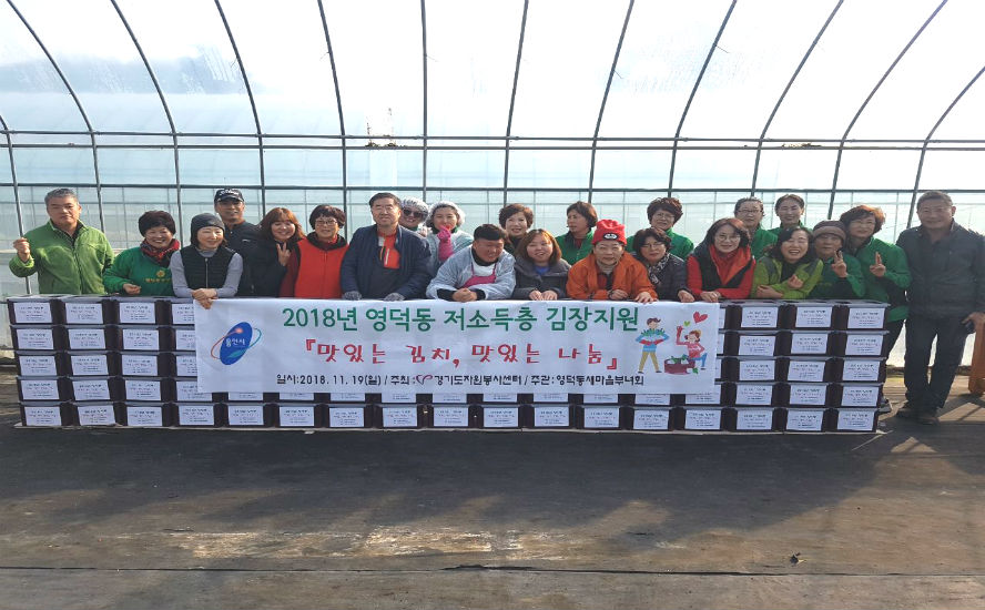 용인시 기흥구 영덕동은 19일 새마을부녀회가 주관하고 지역사회보장협의체 후원해 김장김치 100상자(상자당 15㎏)를 담가 관내 저소득가구에 전했다고 밝혔다.