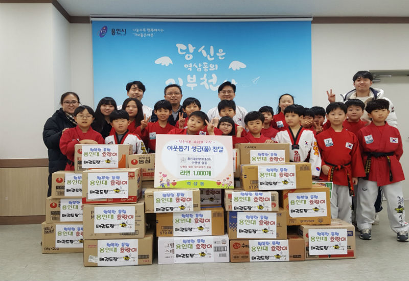 용인시 처인구 역삼동은 14일 김량장동 소재 용인대호랑이태권도장에서 어려운 이웃을 위해 사용해달라며 라면 1000개를 기탁했다고 밝혔다.