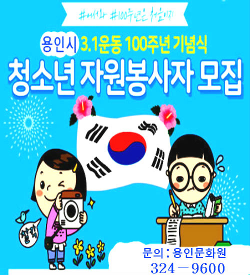 3월 1일 오전10부터 용인시청 광장에서 열리는 100주년 기념식을 비롯해, 한 해 동안 이어질 100주년의 모든 순간에 중심이 돼, 새로운 역사를 만드는 자랑스러운 길에서 같이 할, 제2의 용인만세꾼 신청은 네이버에서 만세꾼을 검색하거나 홈페이지(http://yongin100th.co.kr)에서 신청 하면 된다.