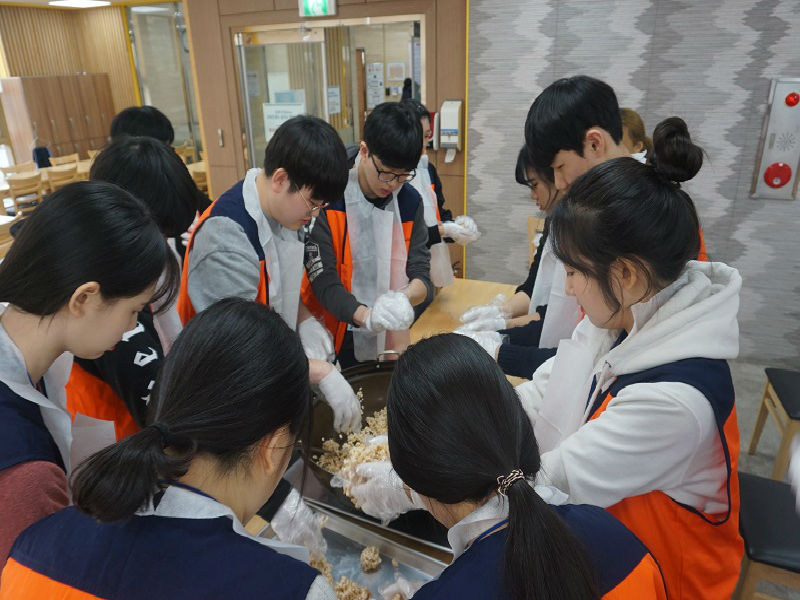 첫날 어르신 선물 만들기는 학생들과 어르신들이 함께 유자청과 한과를 만들어 다음날 새천년3단지 경로당 어르신들께 새해 안부 인사 및 선물 전달을 통해 어르신 세대와의 교류와 나눔 활동을 실천 하였다.