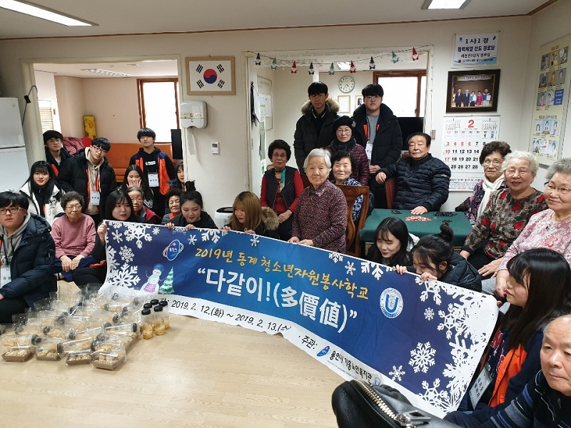 2019년 동계 청소년자원봉사학교는, 자원봉사자소양교육 및 어르신 선물 만들기(유자청, 한과), 성남시 고령친화종합체험관 생애체험, 경로당 어르신 선물 전달 등의 프로그램으로 자원봉사에 대한 이해를 높이고, 어르신들에 대한 인식 개선을 위한 목적으로 진행되었다.
