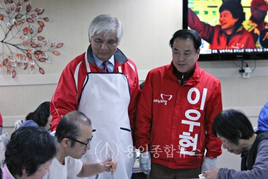 새누리당 이우현 용인갑 후보는 2일, 용인시장애인종합복지관을 방문, 새누리당 비례대표 2번 김정록 후보와 함께 무료급식 봉사에 참석했다.