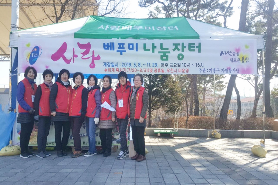 기흥구 봉사단이 주최하는 나눔장터 판매수익금과 기부물품은, 매월 관내 저소득층, 장애인, 독거노인 등 취약계층30가구에 매달 밑반찬과, 겨울철 김장을 자원봉사단이 직접 만들어 배달까지 하는데 사용하고 있으며, 현재까지 약10년간 1000회에 걸쳐 사랑을 베풀고 있어, 시민들의 두터운 사랑과 신뢰를 받으며 그 맥을 이어오고 있다.
