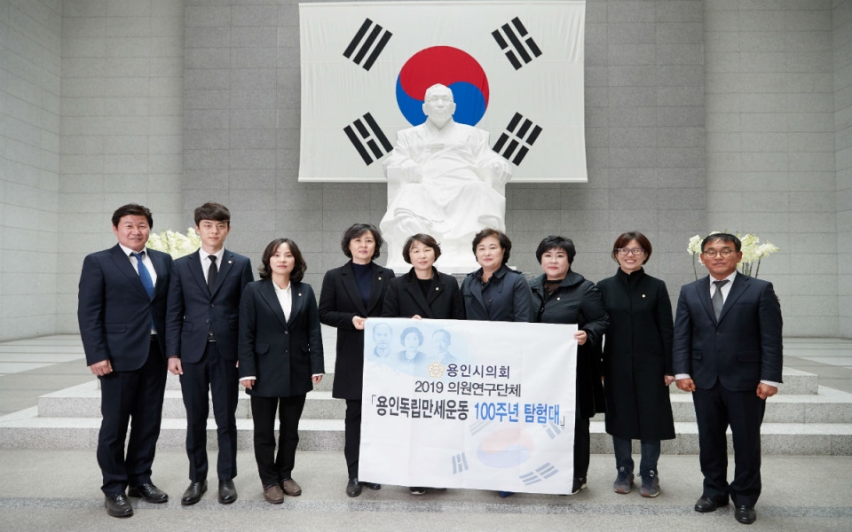용인시의회 의원연구단체 「용인독립만세운동 100주년 탐험대(대표 유진선)」는 지난 14일 국립서울현충원과 임시정부 주요인사의 묘가 있는 효창공원을 찾아 본격적인 연구단체 활동에 앞서 우리 선열들의 정신을 기리고 예를 표하는 시간을 가졌다.