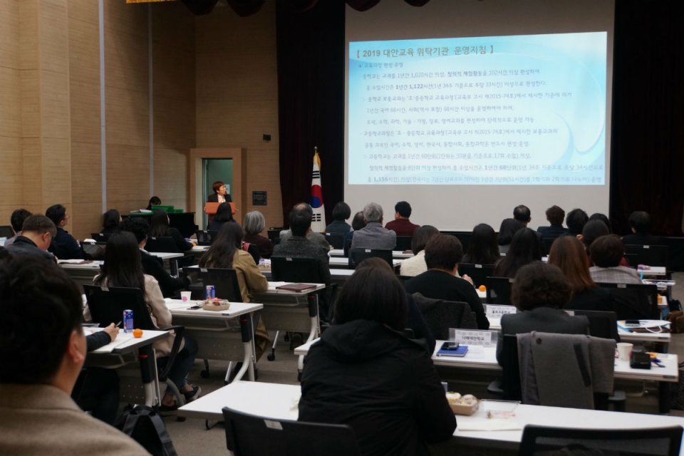 연수의 주요 내용은 ▲지정서 수여, ▲위탁기관별 특화프로그램 소개, ▲2015 개정교육과정 기반 위탁교육 운영 방안, ▲2019 대안교육 위탁기관의 운영방향, ▲매뉴얼 안내 및 질의 응답 시간 등이다.