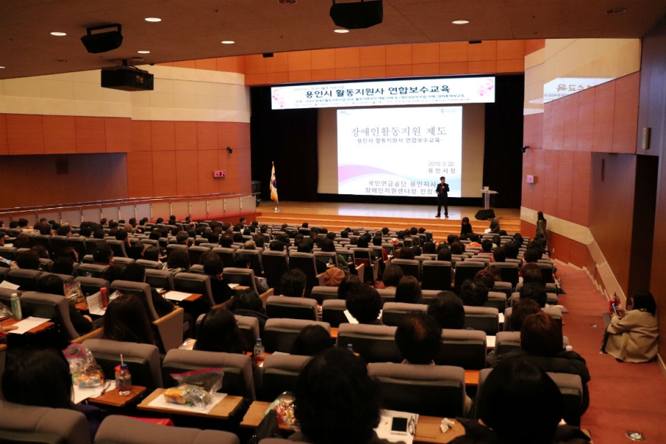 용인시기흥장애인복지관(관장 김선구)은 2019년 3월 22일 용인시청 에이스홀에서, 용인시 활동지원사 연합 보수교육을 진행하였다.