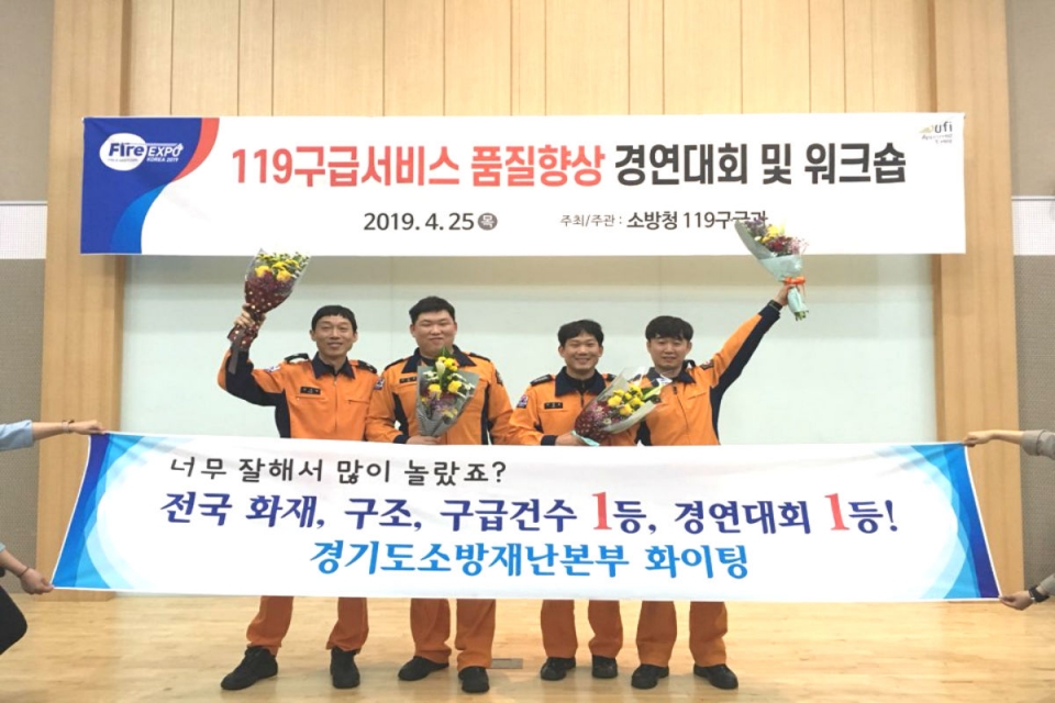 지난 3월부터 선수단을 꾸리고 연습에 매진해온 용인소방서 구급대 대원들(소방위 박재권(광주소방서 소속), 소방장 이정호, 소방교 이무송, 소방사 황병훈)은 다양한 현장경험을 통해 얻은 경험과 지식을 바탕으로 연습에 매진하여 최우수상의 영예를 안았다.