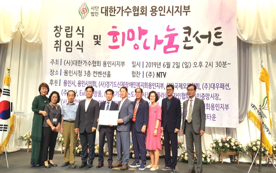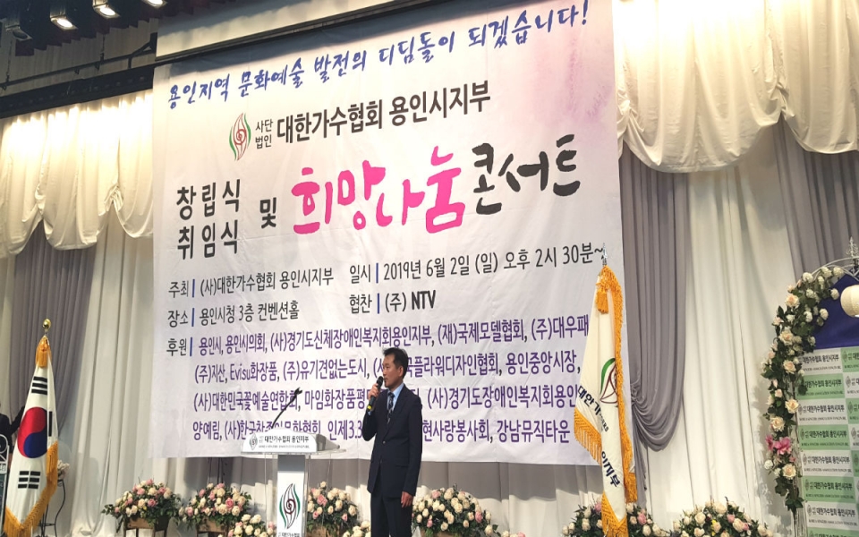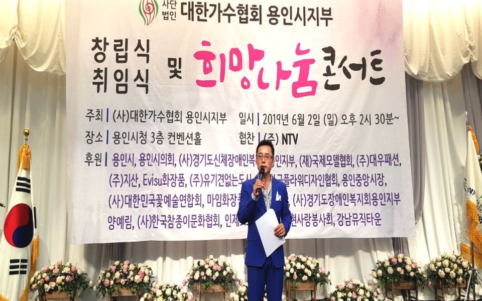 6월 2일 오후2시, 용인시청 컨벤션홀에서는, 대한가수협회 용인시지부 창립식 및 지부장 취임식이진행되었다.