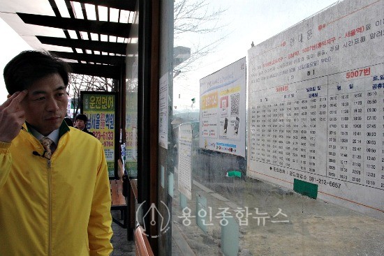 민주통합당 김민기 용인을 야권단일후보는 6일 지역의 핵심현안인 출퇴근길 교통문제 해결을 위해 출근길 광역버스를 직접타고 현장체험에 나섰다.