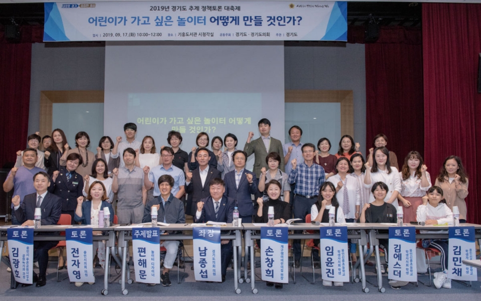 경기도와 경기도의회가 주최하는‘2019 추계 정책토론 대축제’「어린이가 가고 싶은 놀이터 어떻게 만들 것인가?」토론회가 남종섭 경기도의원(더불어민주당 총괄수석, 용인4)이 좌장을 맡은 가운데 9월 17(화) 기흥도서관 시청각실에서 열렸다.