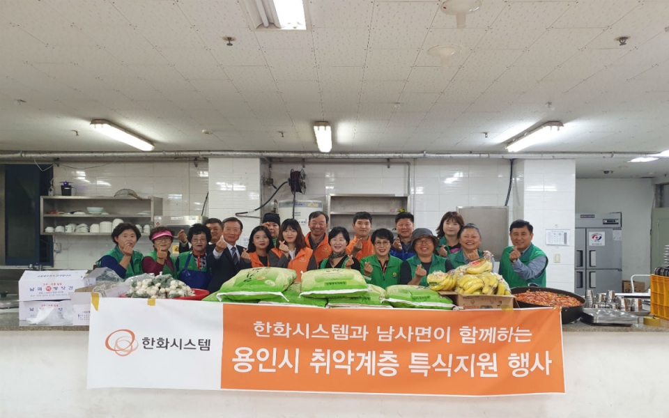 용인시 처인구 남사면은 한화시스템(주) 용인연구소가 남사면 새마을부녀회와 함께 지난 14일 용인시새마을회관에서 특식지원 행사를 벌였다고 밝혔다.