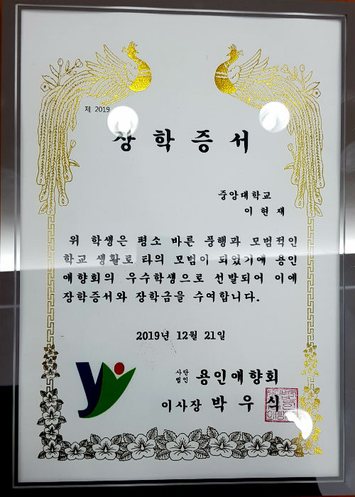 2019년 12월 21일 오전10시, 사단법인 용인애향회 5층 대회의실에서 장학금 수여식이 있었다.