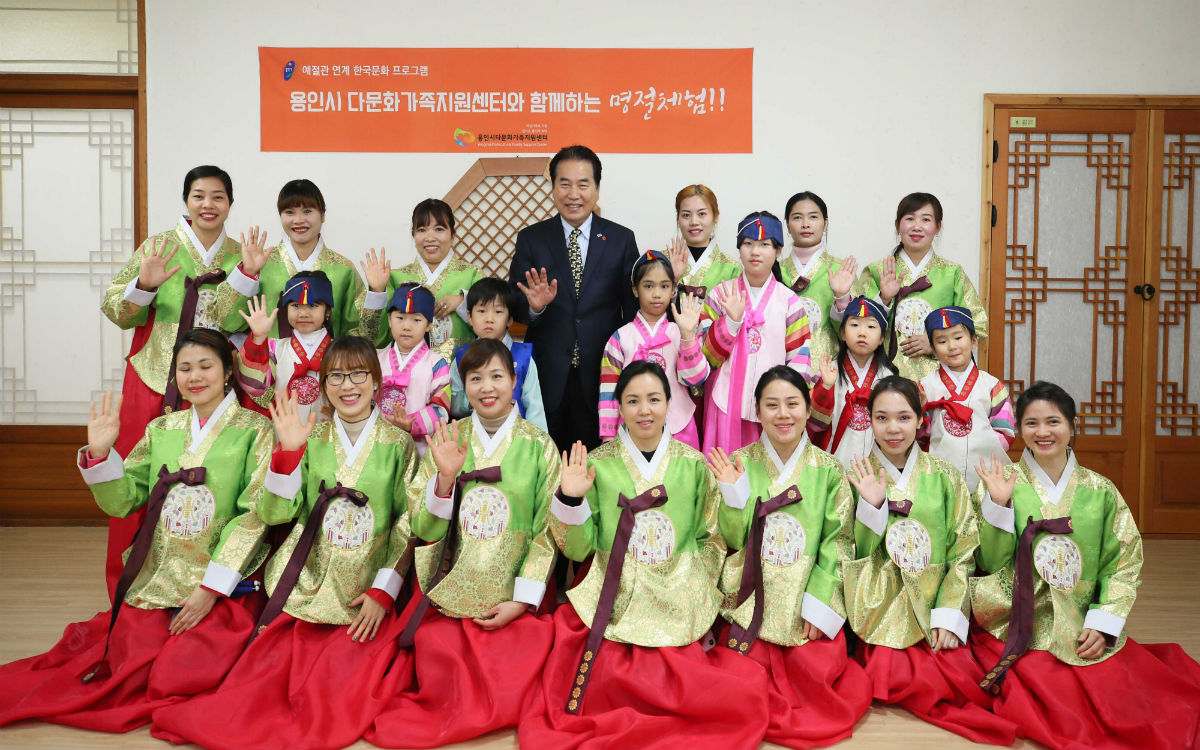 백군기 용인시장은 17일 처인구 김량장동 용인시 예절교육관에서, 설맞이 전통문화를 체험하는 다문화가족 26명을 격려했다.