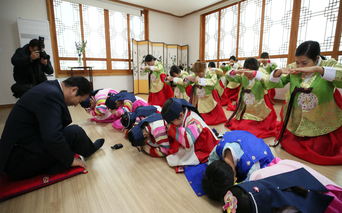이날 베트남, 중국, 필리핀 등에서 온 결혼이주여성과 자녀들은, 한복 입는 법과 절하는 법을 배우고 직접 설 명절 음식인 떡국을 끓여 시식하는 시간을 가졌다.