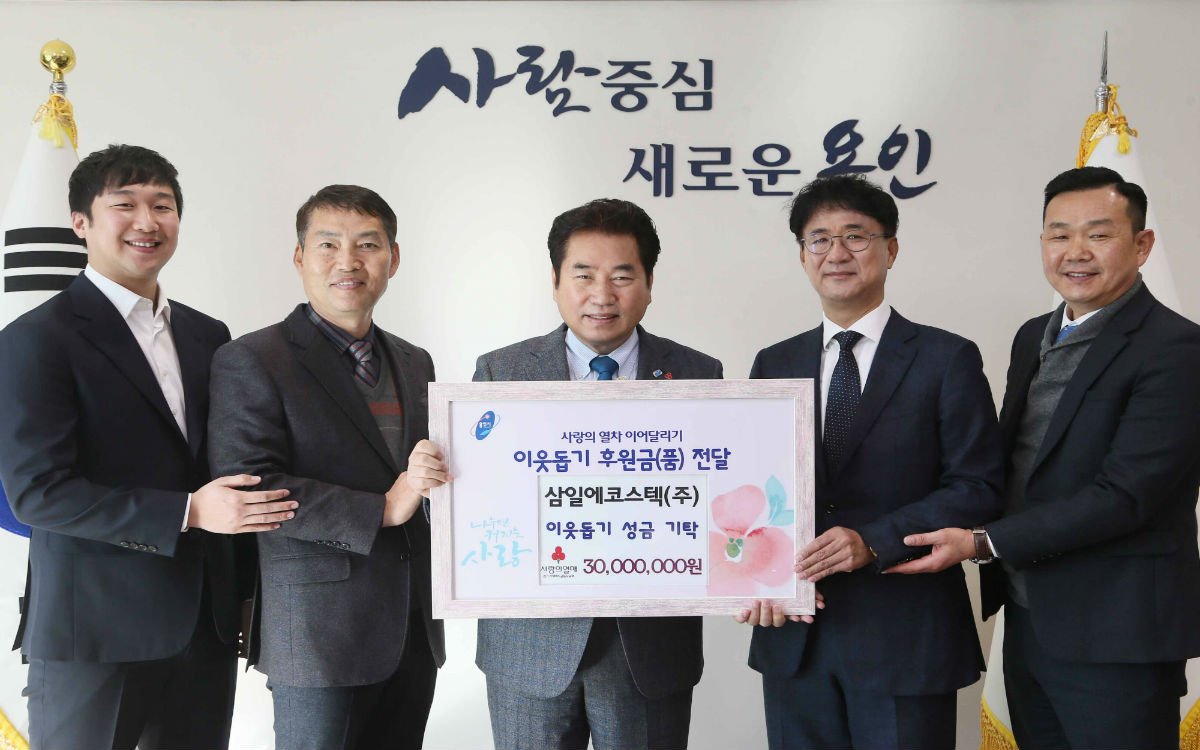 용인시는 6일 처인구 남사면 건설업체 삼일에코스텍의 윤기석 회장이 백군기 시장실을 방문해, 연말연시 이웃돕기 운동인 ‘사랑의 열차’를 통해 성금 3000만원을 기탁했다고 밝혔다.