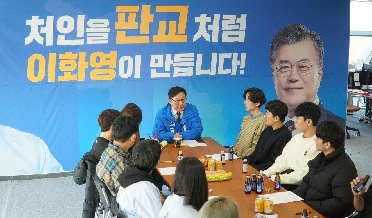 더불어민주당 이화영 경기 용인시갑 국회의원 예비후보는 11일 오후, 용인시 처인구 선거사무소에서 용인지역 대학생 등 2030세대 청년 10여명과 처인 발전 등을 주제로 간담회를 가졌다.