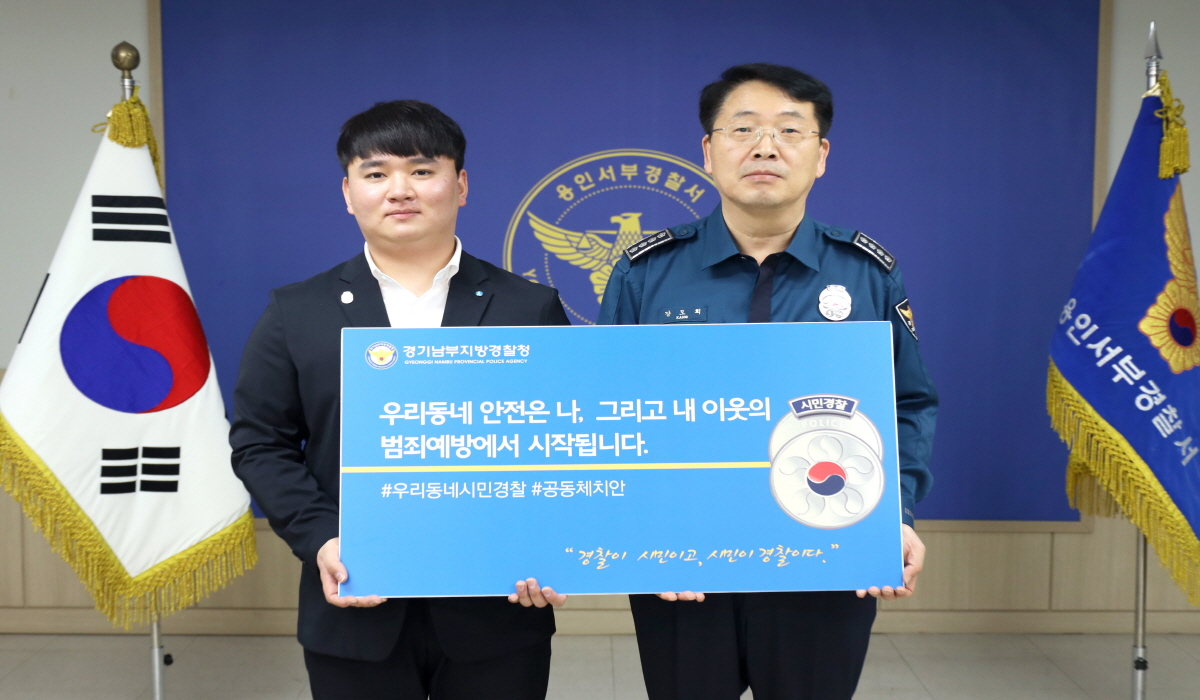 용인서부경찰서(서장 강도희)는 26일 우리은행 죽전역지점을 방문하여, 보이스피싱 인출책 피의자 검거 기여 및 피해를 예방한 차 모(25세)계장에게 표창장, 신고보상금, 시민경찰 배지를 전달하고 ‘20년도 우리동네 시민경찰 2호’로 선정했다.