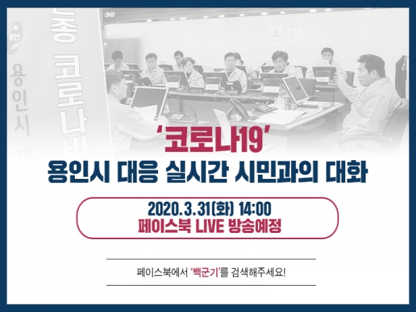 페이스북 LIVE 방송도 예정 용인시에서는 3월31일 오후 2시부터 코로나19 사태에 대해, ‘용인시 대응 실시간 시민과의 대화’를 실시한다. 페이스북 LIVE 방송도 예정되어있다. 페이스북에서 백군기를 검색. 저작권자 © 용인종합뉴스 무단전재 및 재배포 금지 천홍석 기자 다른기사 보기