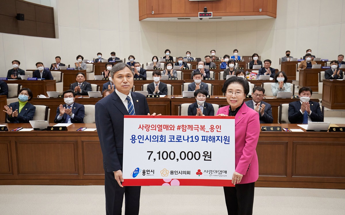 용인시의회(의장 이건한)는 6일 오전 10시 40분 본회의장에서, 경기사회복지공동모금회에 코로나19 관련 성금을 기탁했다.