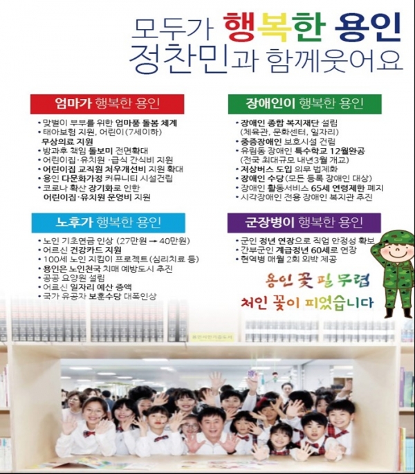 정 전 시장은 “처인지역의 환경개선을 위해, 고압선 송전탑 지중화를 적극 추진하며 복지확대를 위한 제도개선에도 노력하겠다”고 말했다.