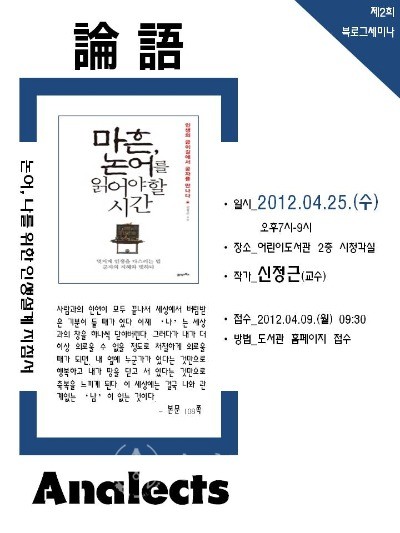 “마흔을 마라톤에 비유한다면 반환점이다. 경마장의 말처럼 앞만 보고 달리던 30대를 지나 인생을 다시 한번 고민해 볼 시기이다. 남은 인생을 내 것으로 만드는 데 논어만큼 깊은 가르침이 없다”고 저서에서 말한 신정근 교수는 이번 강의에서 저자의 깊은 인생 강의와 함께 일상생활에서도 쉽게 적용할 수 있는 이야기들을 풀어낼 예정이다.